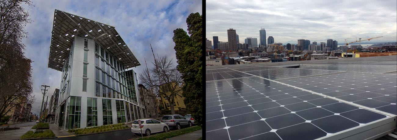 The Bullitt Center’s solar PV array and ground source heat pump aim for net zero energy.